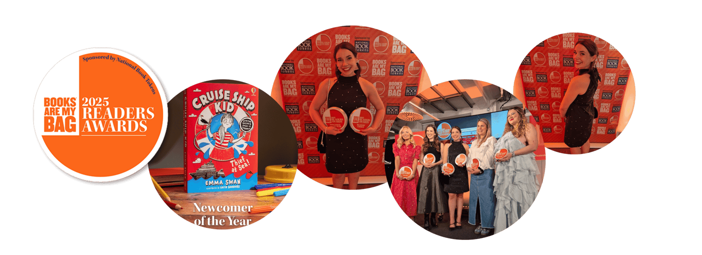 Emma won 'Newcomer of the Year' and the 'Reader's Choice' Awards at the Books Are My Bag Readers' Awards 2025. The night was hosted by Clare Balding. Emma feels so grateful to booksellers for shortlisting her and to the public for voting for her!